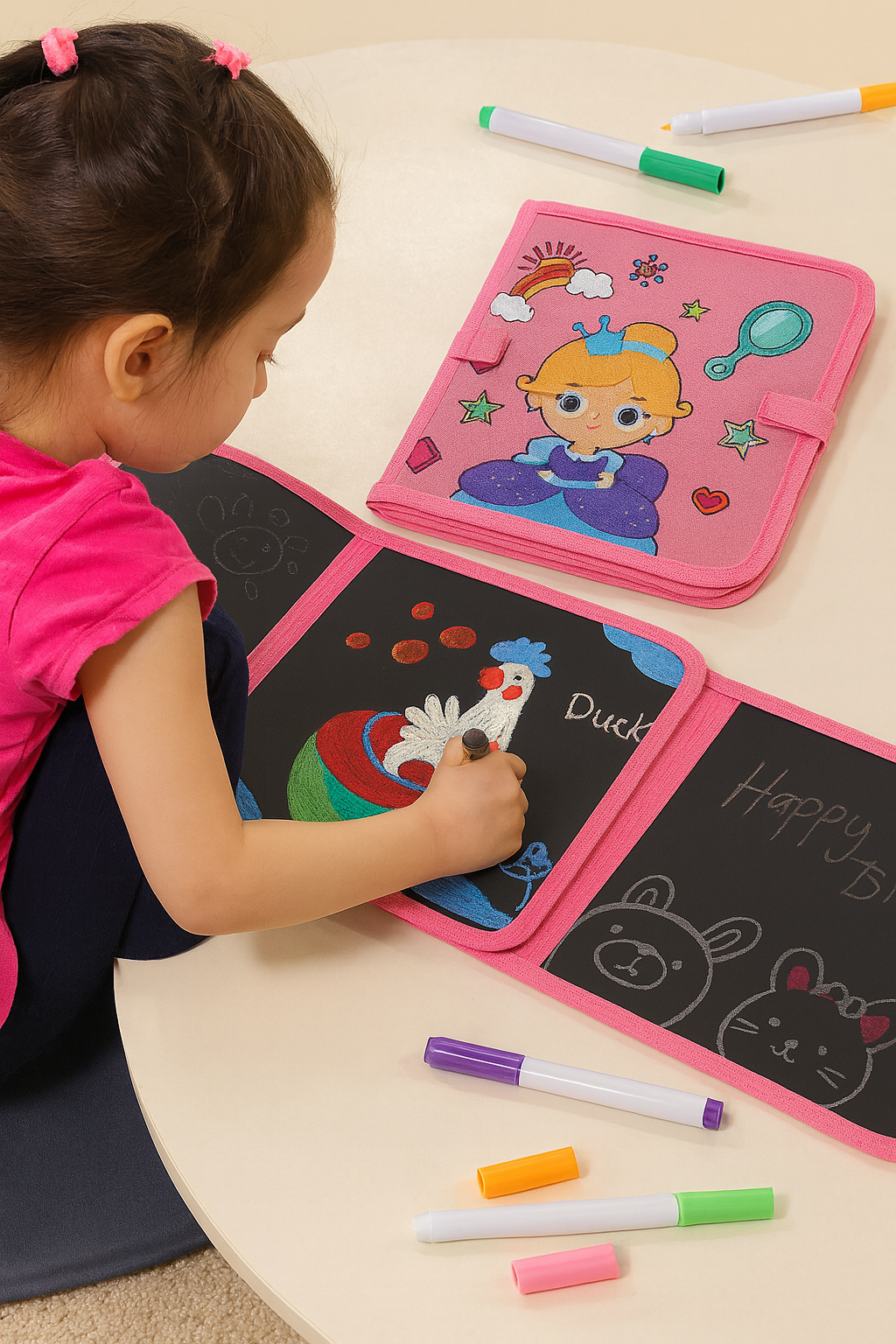 Avec l’Ardoise Magique Grand Format, les enfants partagent leurs idées sur une grande surface commune. Lors d’un anniversaire ou d’un après-midi entre frères et sœurs, ils dessinent ensemble des maisons, des animaux ou de grandes fresques colorées. Une activité conviviale qui favorise le travail d’équipe, la créativité et les rires partagés.